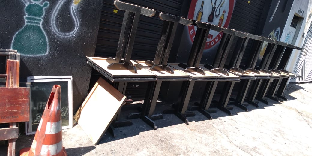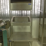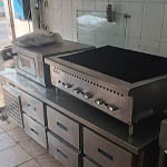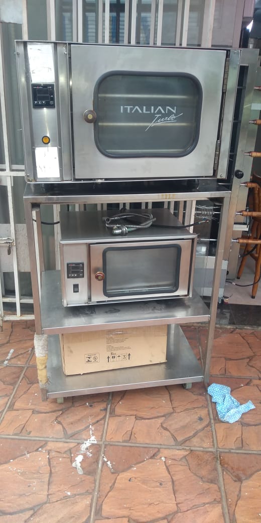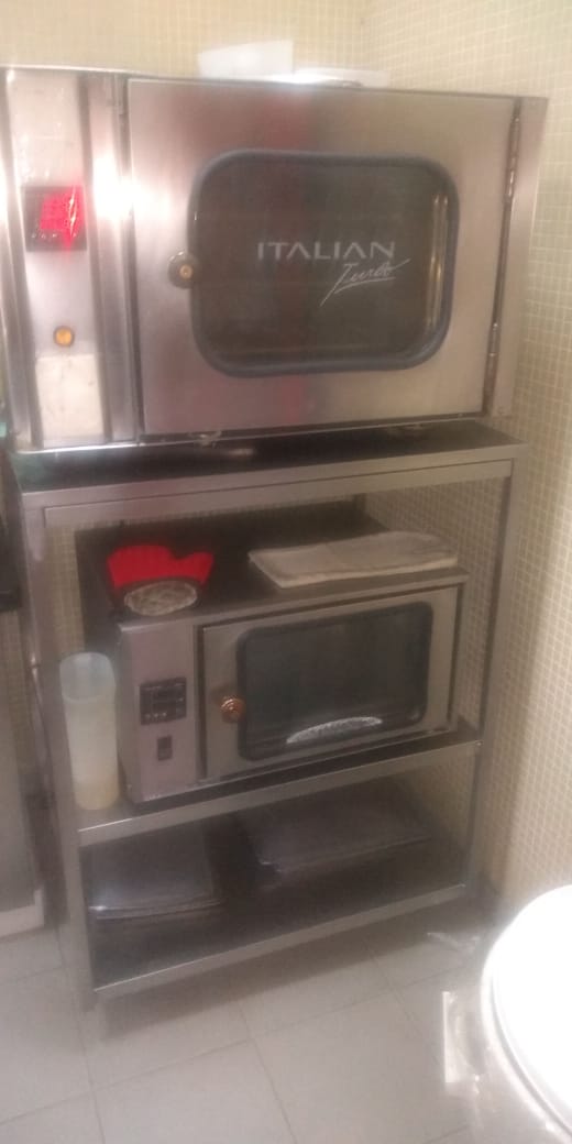 Mesas, estantes, prateleiras em inox e pia de inox